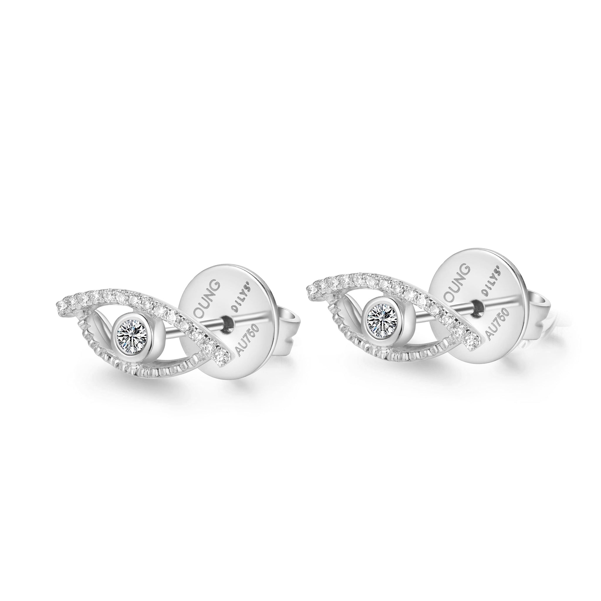 Celestial Eye Diamond Trim White Gold Ear Studs