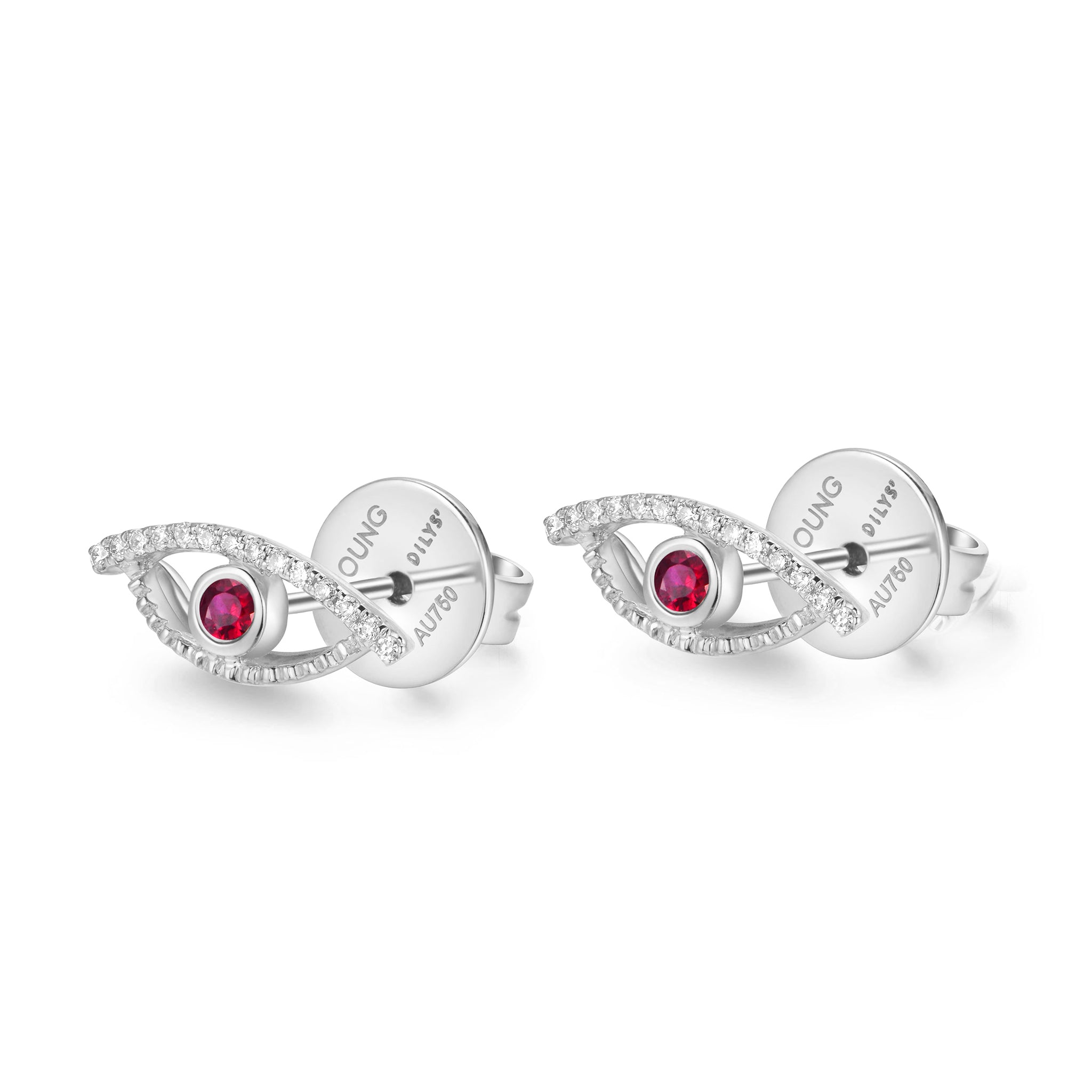 Delicate but eye-catching, these Celestial Eye ear studs with a sparkling white diamond trim are modest statement earrings suitable for any occasion.  With nine different options to choose from, each type of precious gemstone conveys a distinctive power that is evocative of the evil eye’s positive energies.