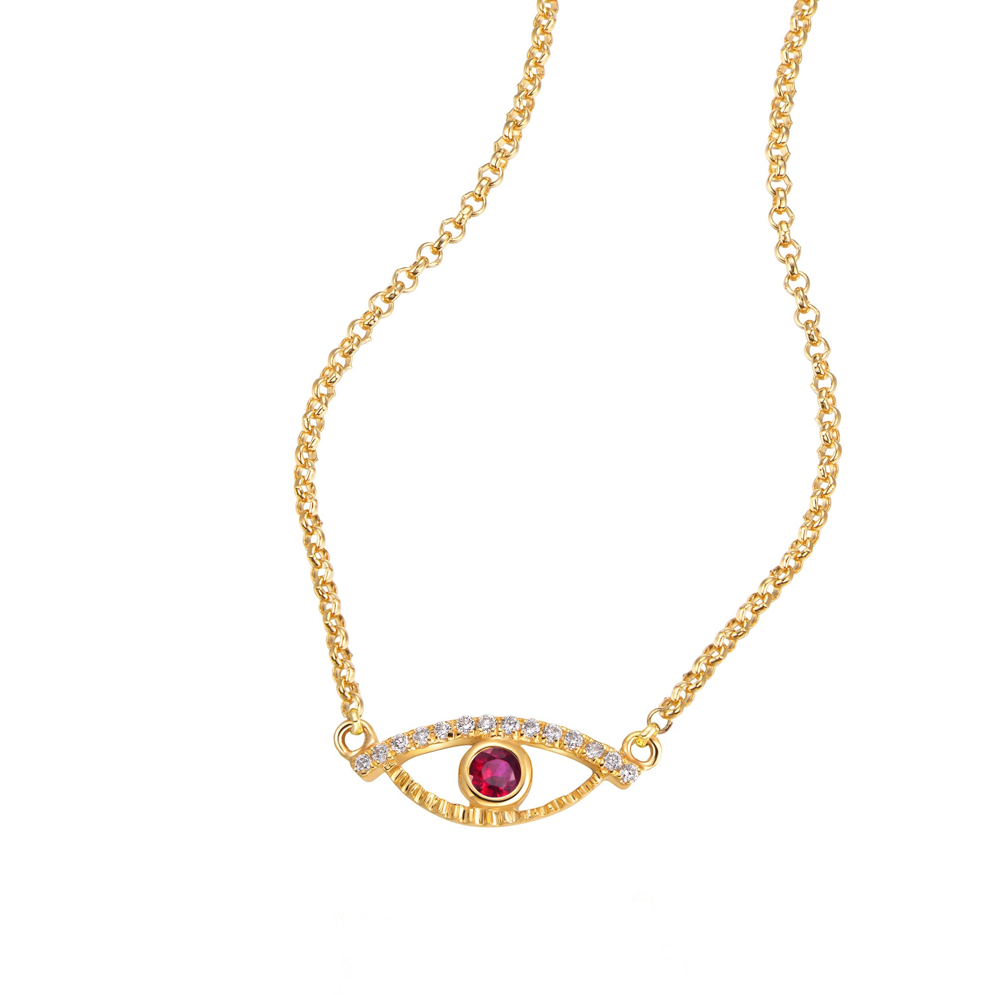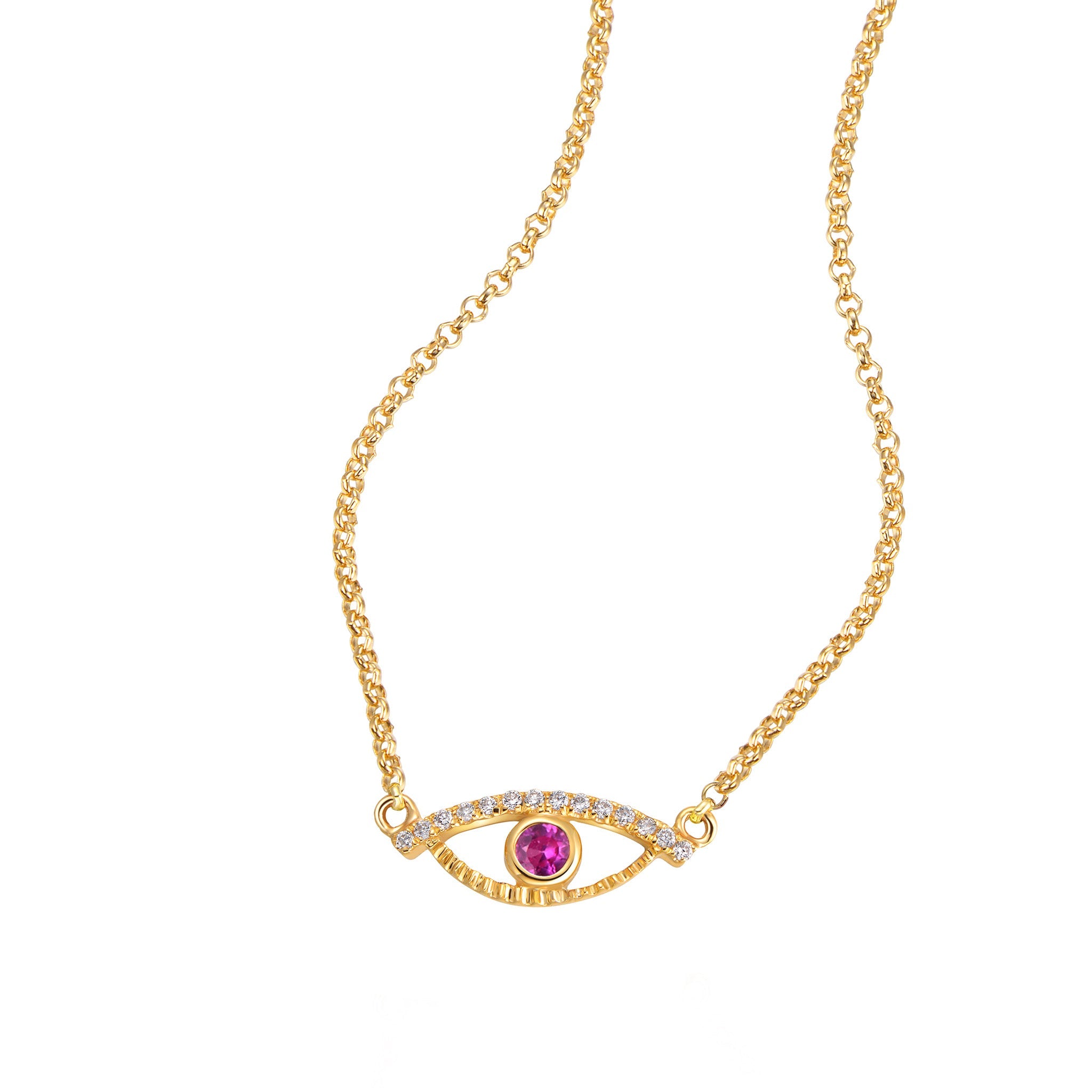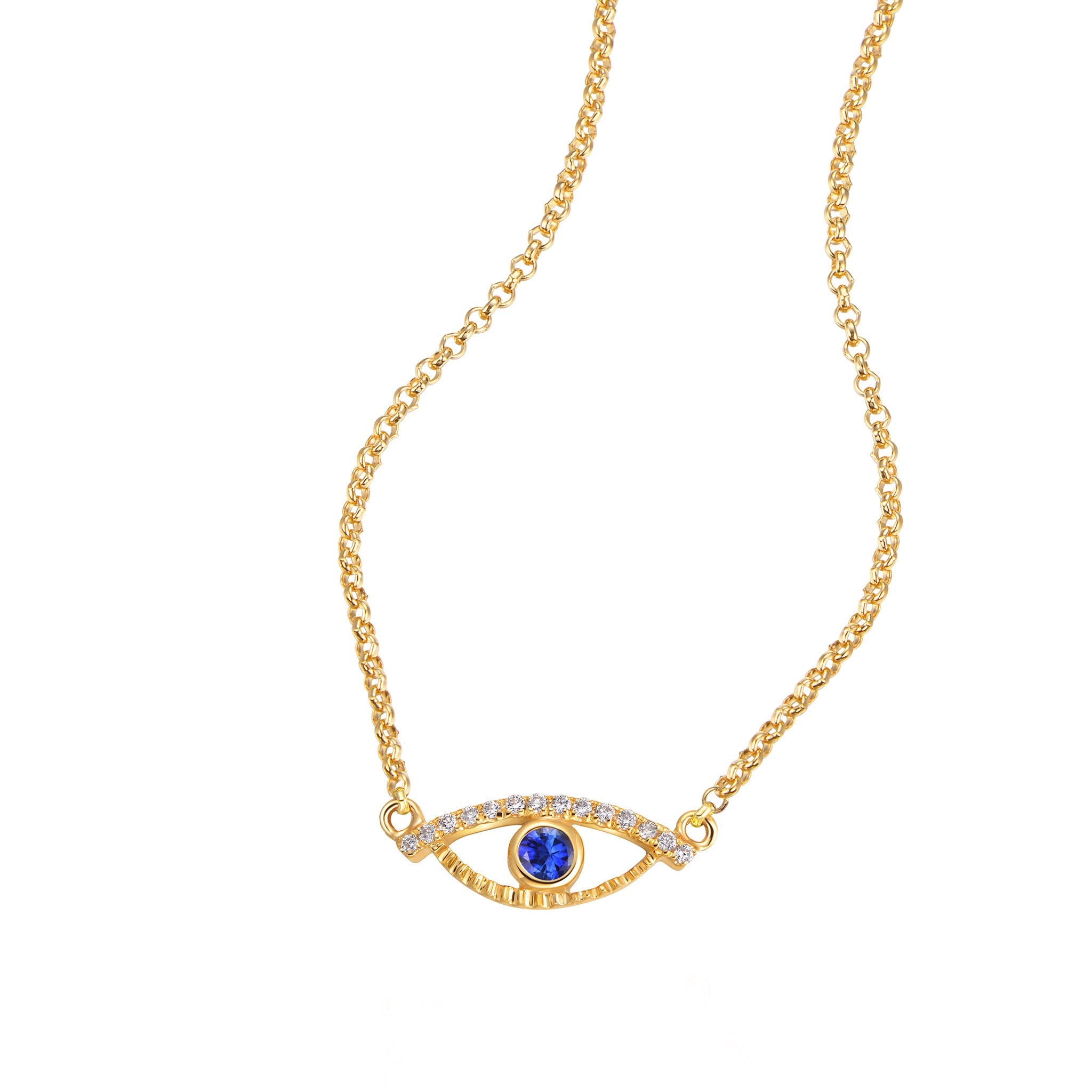 With an extra glimmer of diamonds on the trim, this version of the Celestial Eye Necklace is a beauty to stare at and wear, especially since it’s designed to bring charm and positive energy to the wearer. With nine different options to choose from, each type of precious gemstone conveys a distinctive power that is evocative of the evil eye’s positive energies.