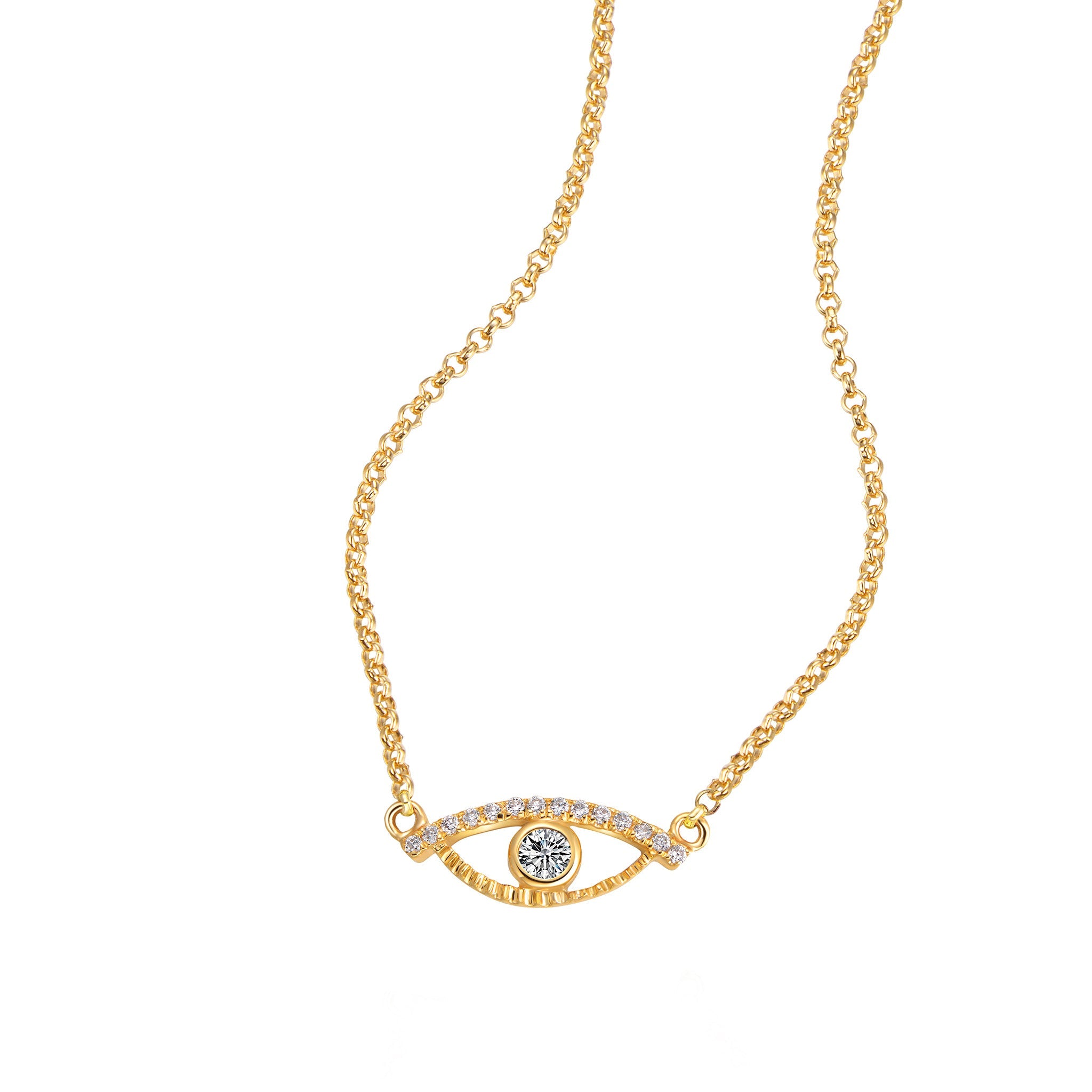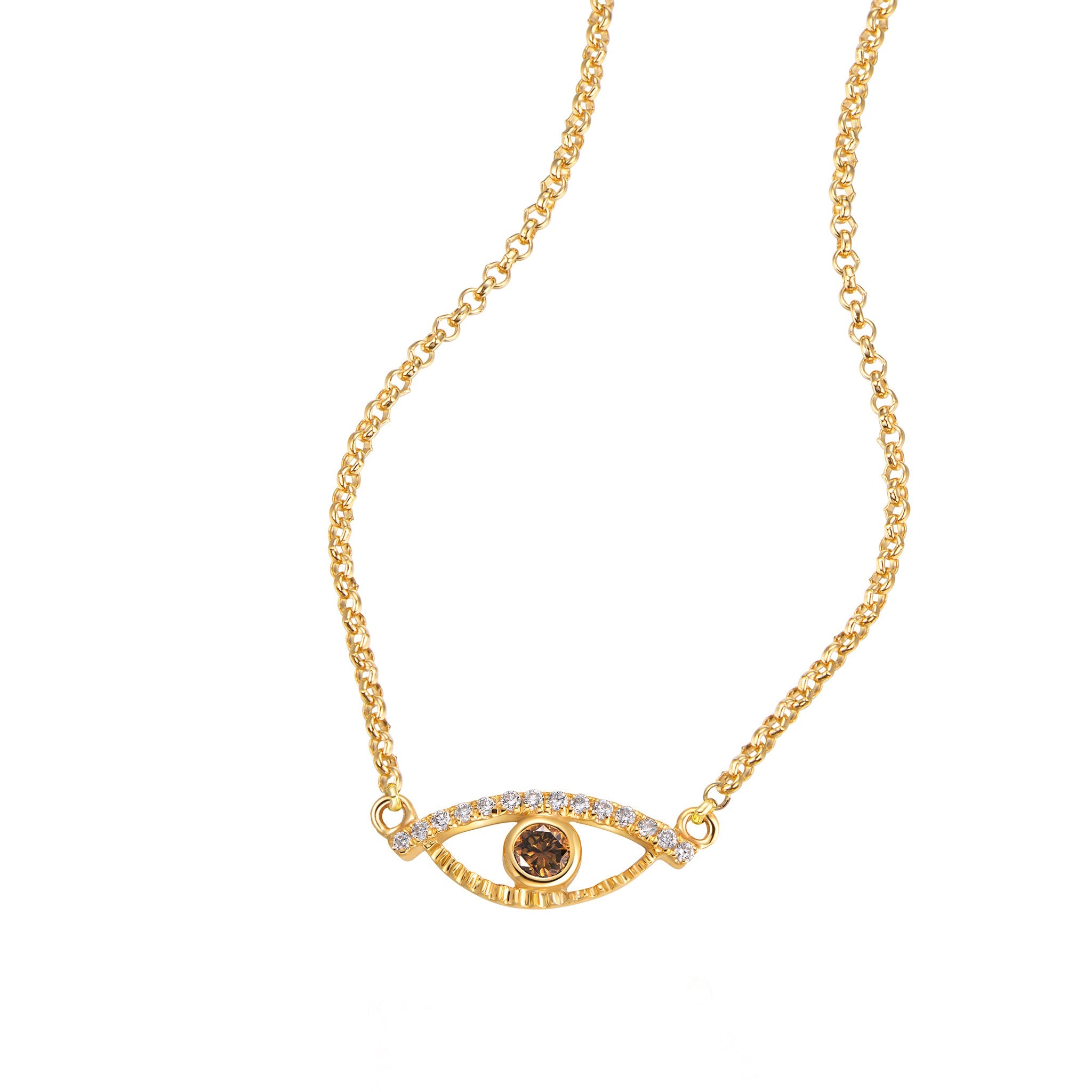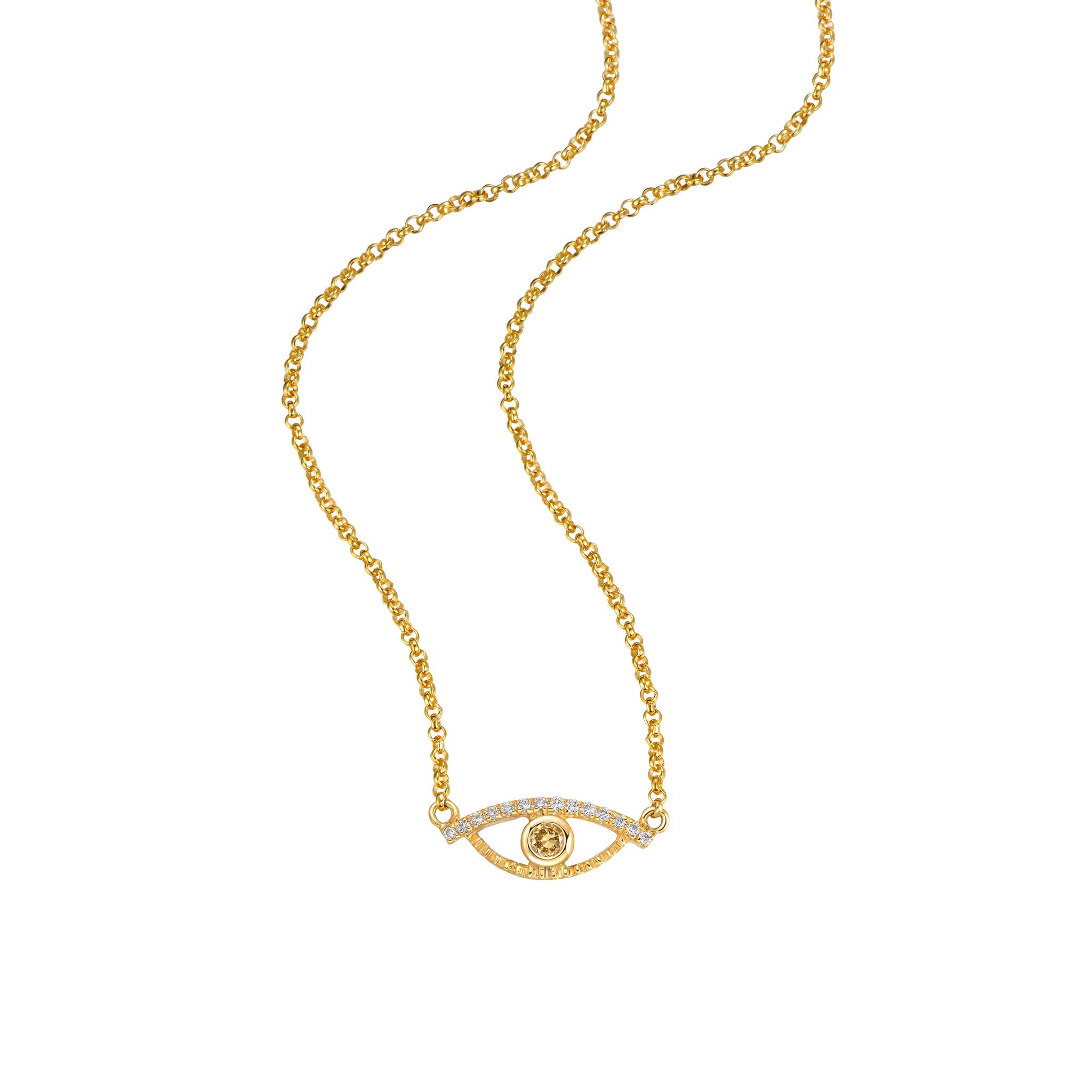 Celestial Eye Diamond Trim Yellow Gold Necklace