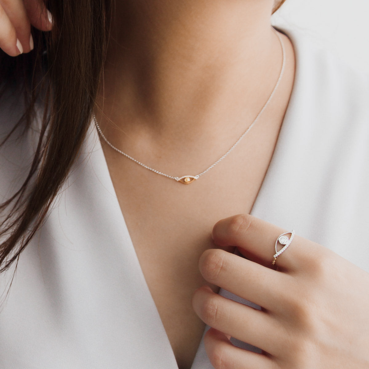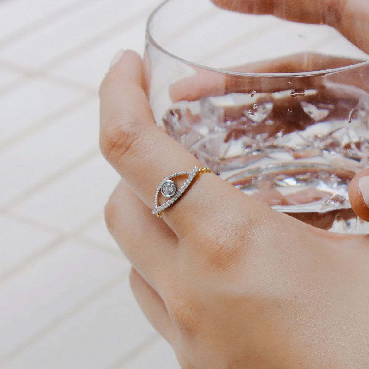 Upon popular request, we bring to you a new edition of the Celestial Eye Ring with Diamond Trim. It is larger and more striking, perfect for occasions where you want to catch someone’s eye.