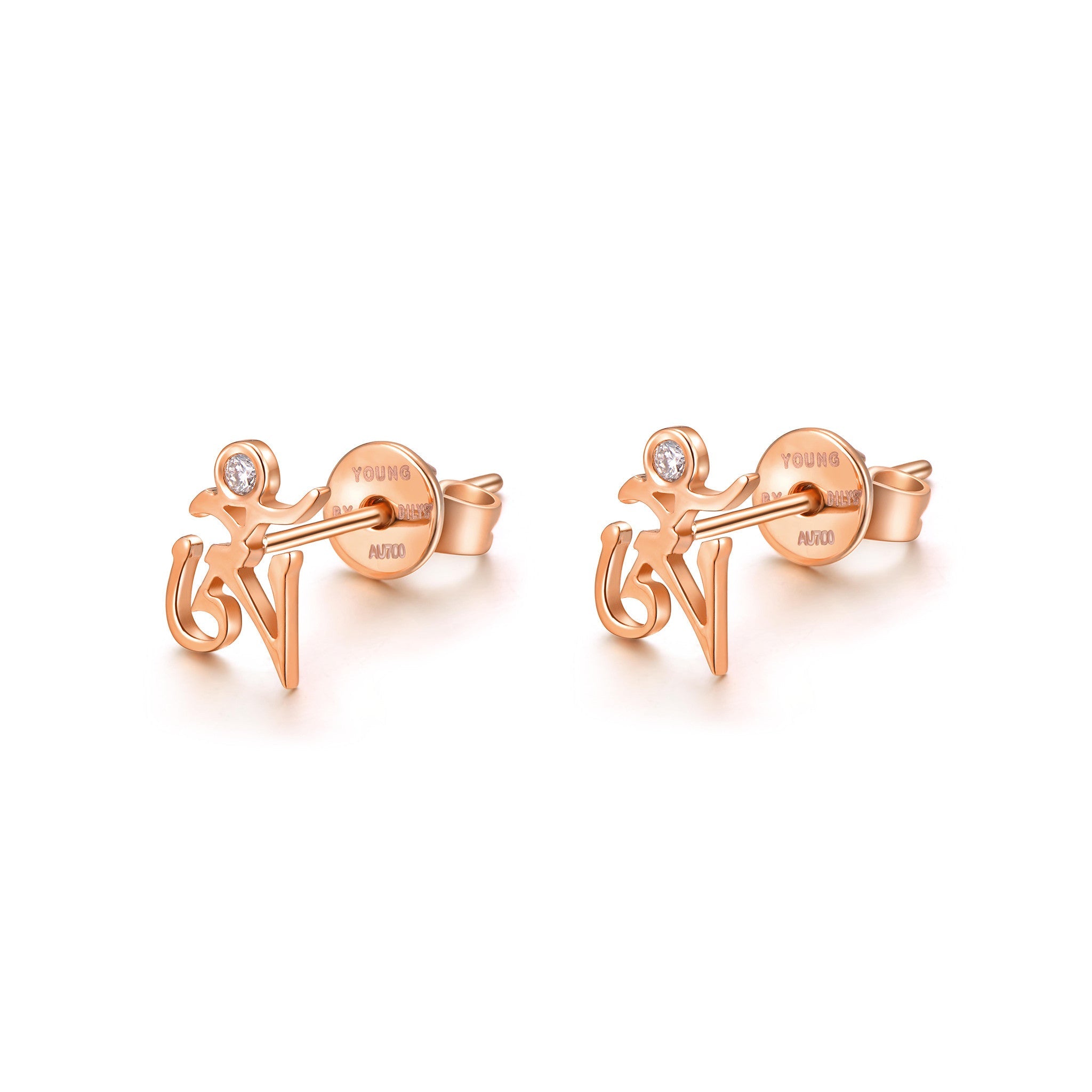 Delicate but powerful, these minimalist OM ear studs with a subtle white diamond accent act as modest statement earrings suitable for both everyday and special occasions.